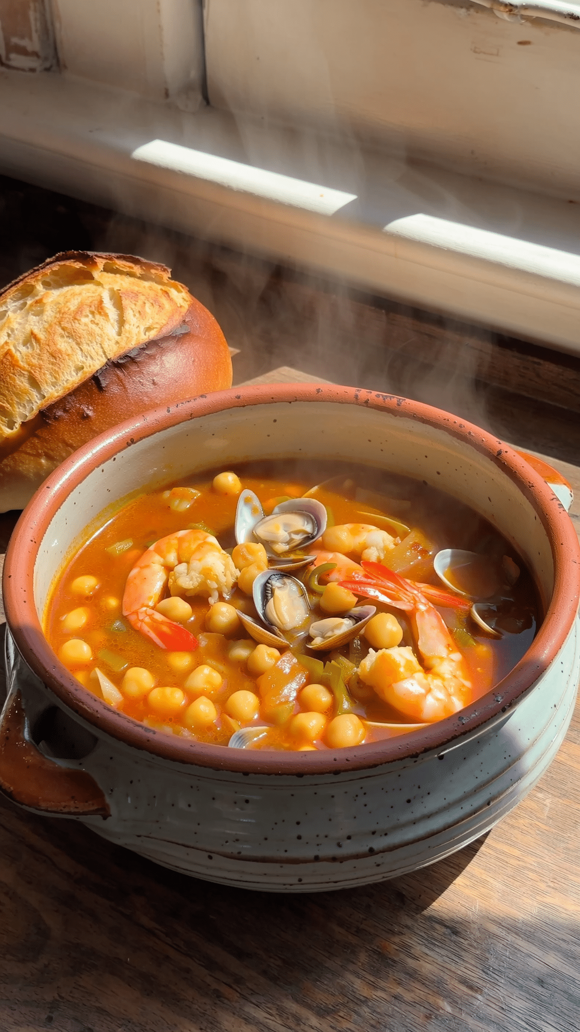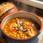 Esta receta ancestral mediterránea combina la cremosidad reconfortante de los garbanzos con la elegancia salina de los mariscos, creando un equilibrio de sabores que satisface tanto el hambre física como la nostalgia emocional. Cada cucharada transporta directamente a las costas españolas donde este tipo de guisos han nutrido familias durante generaciones.