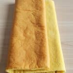- Desmoldar de inmediato sobre un paño espolvoreado con azúcar impalpable y enrollar mientras esté caliente.